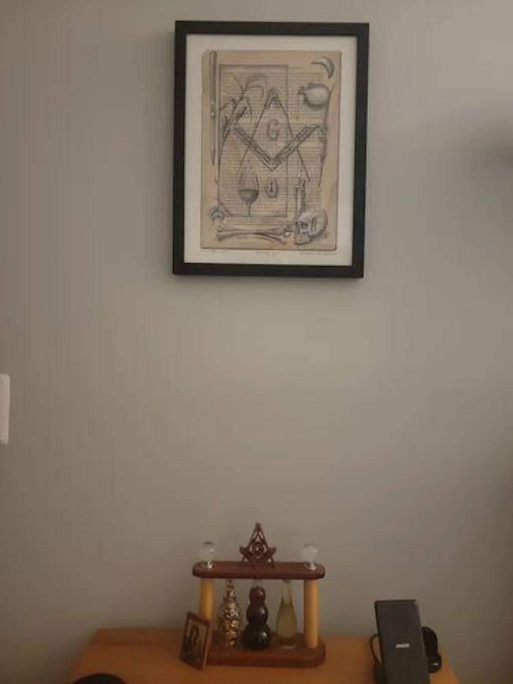 This collection was created on the pages of the book titled “A Library of Freemasonry Illustrated”. The book was in such poor condition but held such valuable information in it that I thought I could do something different to preserve it. I began a project in which I would read a page and begin sketching the ideas that were inspired by what I read. The rest of the collection includes three unique drawings titled “Unlocking Knowledge, Unlocking Time, and Unlocking Chambers”.